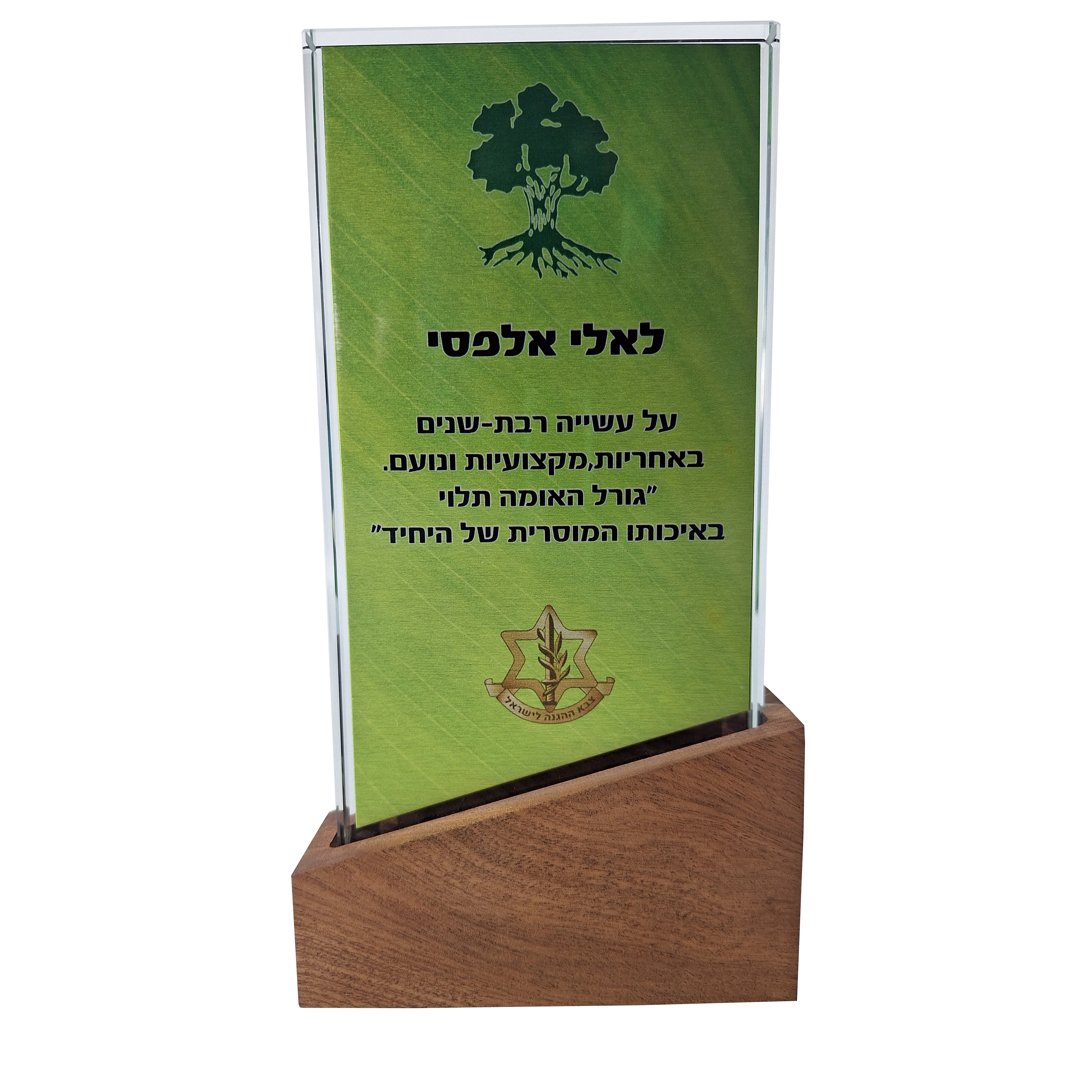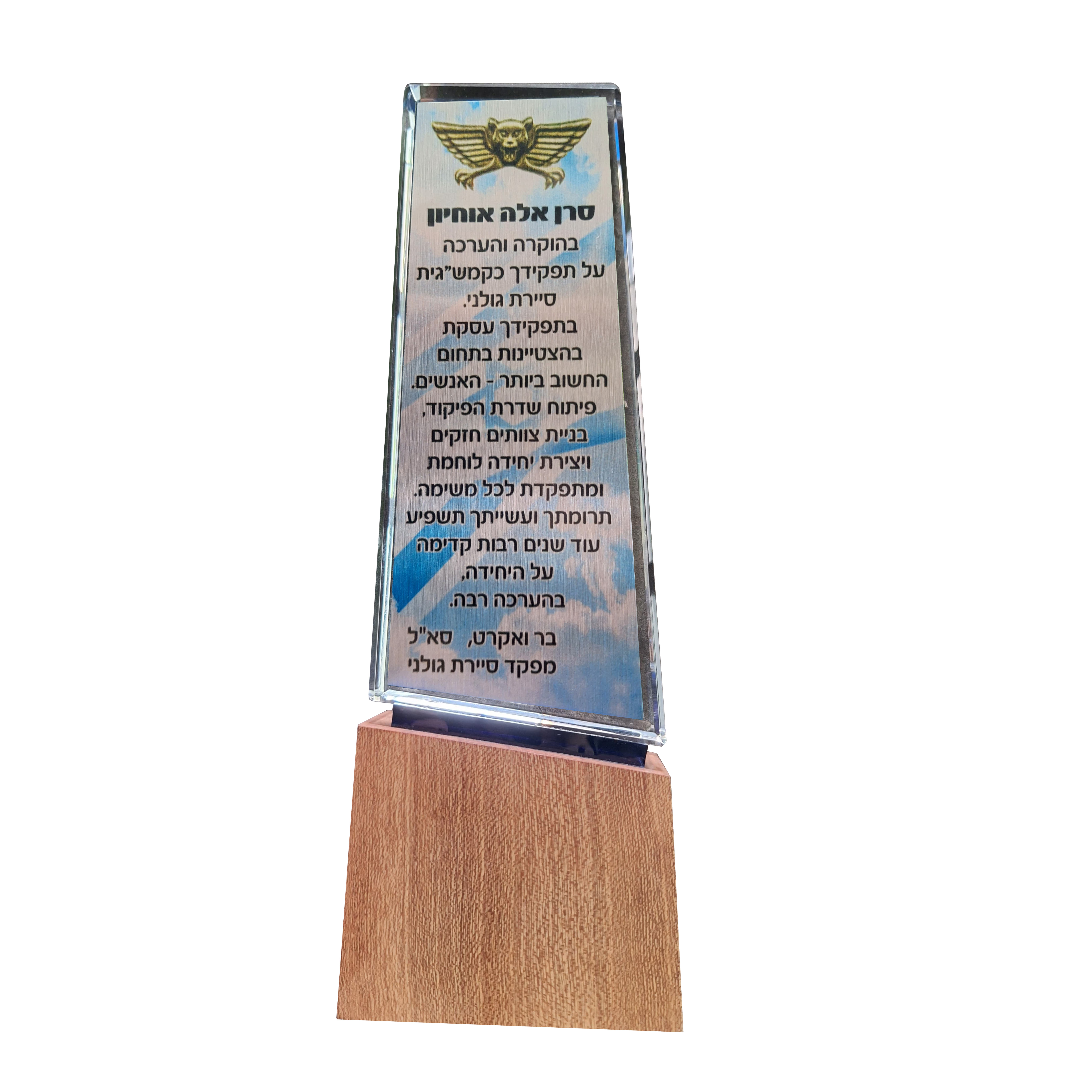 מגן הוקרה מקריסטל רגל זהב HL-008