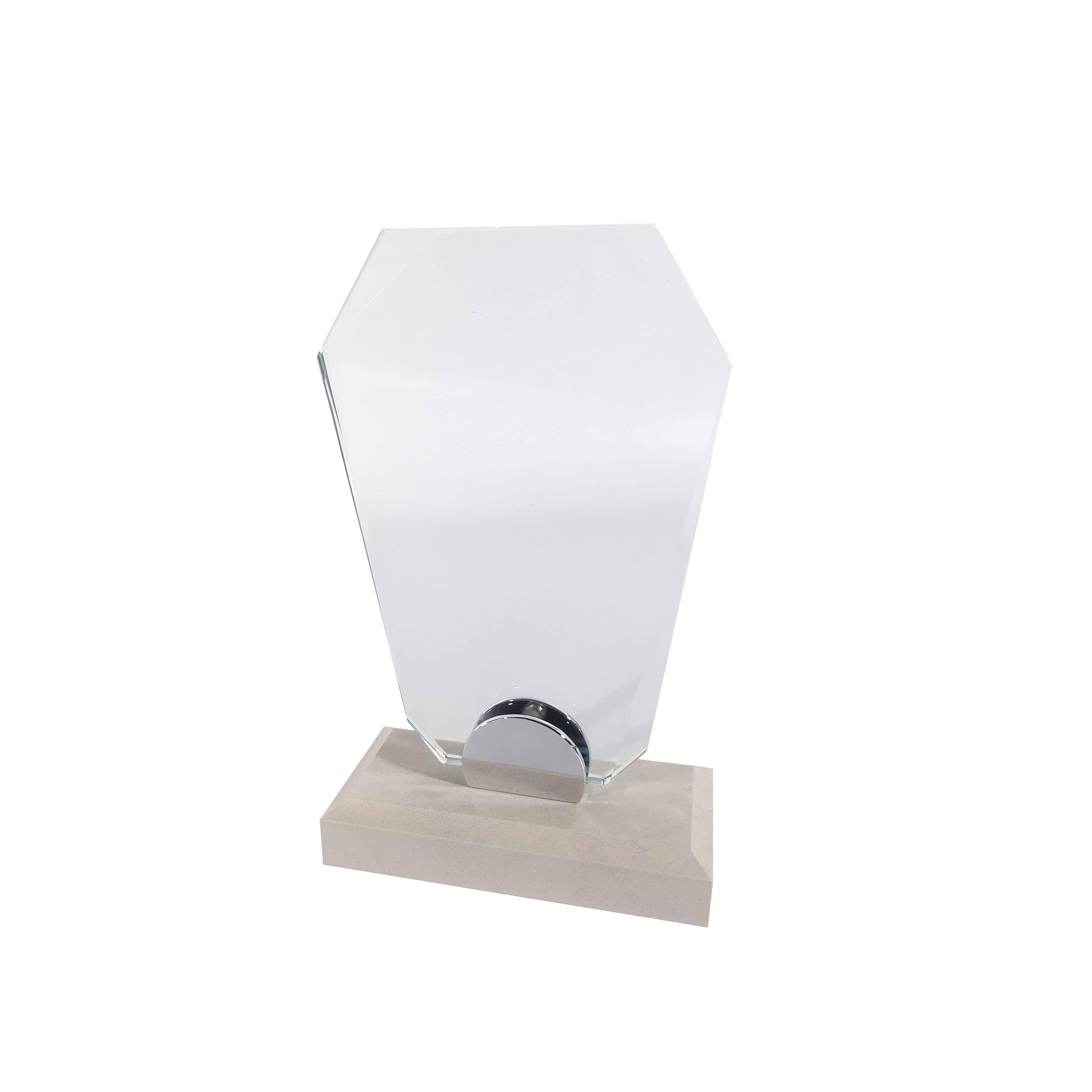 מגן הוקרה מקריסטל עם תושבת שיש לבנה